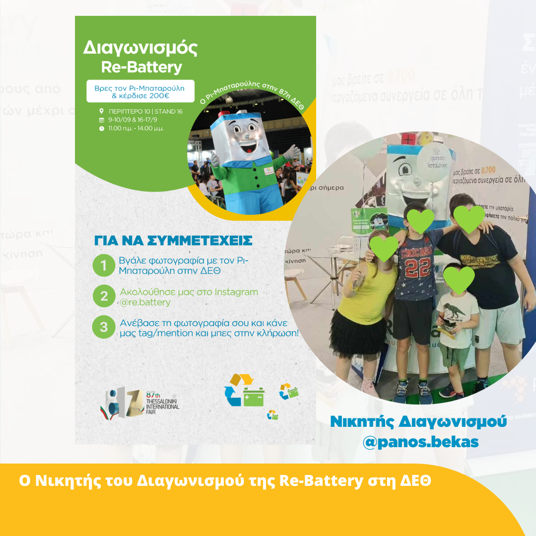 Η Re-Battery, ως Σύστημα για την Εναλλακτική Διαχείριση Συσσωρευτών οχημάτων & βιομηχανίας, συμμετείχε στην 87η Διεθνή Έκθεση Θεσσαλονίκης που πραγματοποιήθηκε από 9 έως 17 Σεπτεμβρίου.
