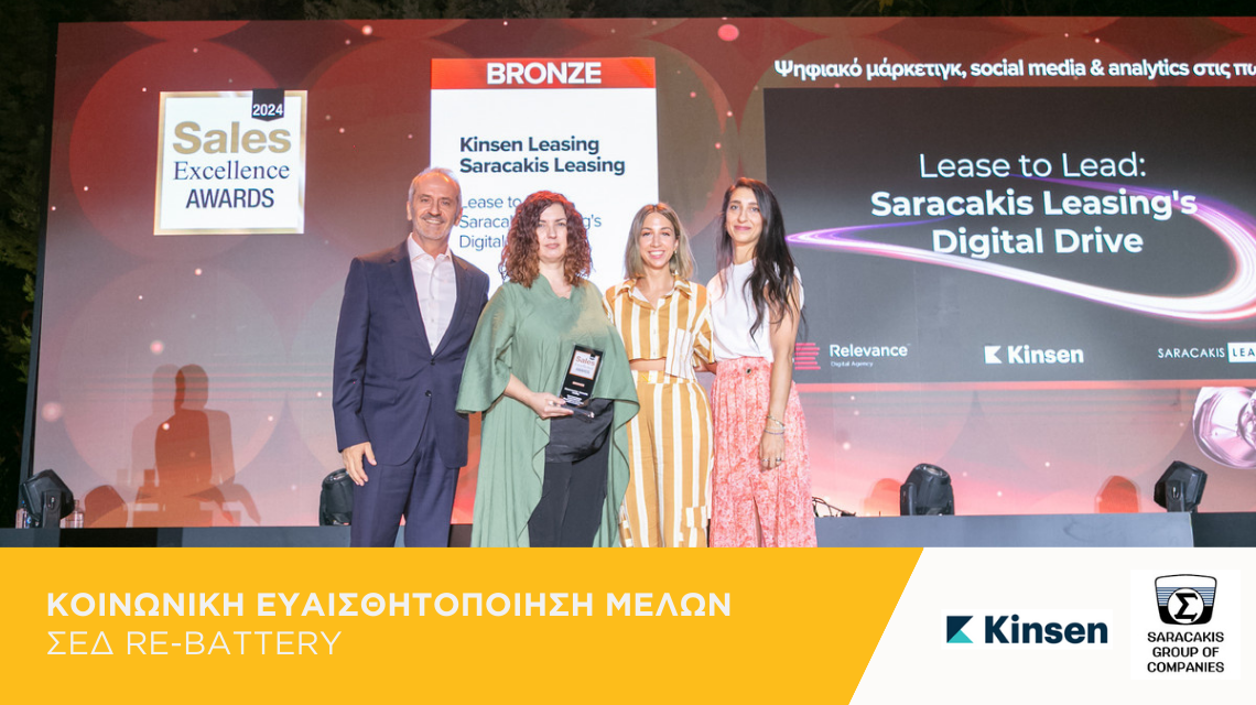 Η Kinsen ανακηρύχθηκε Νικήτρια στα Sales Excellence Awards 2024 κερδίζοντας το Bronze Award για το brand name Saracakis Leasing στην κατηγορία “Digital Marketing, Social Media & Analytics”.