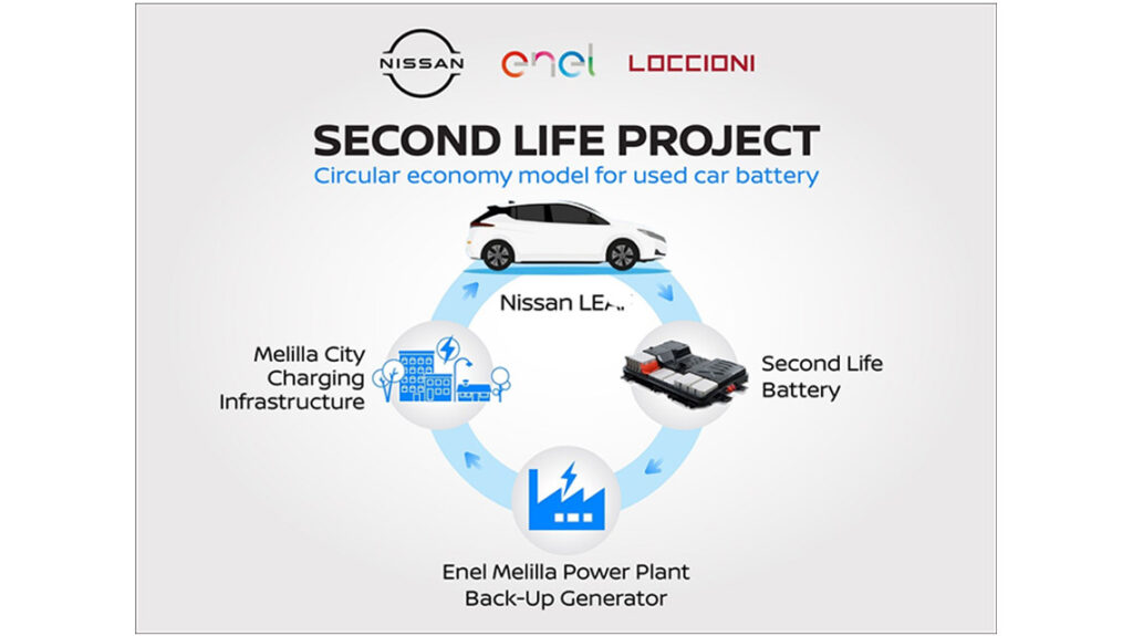 Η Nissan και η Enel ενώνουν τις δυνάμεις τους για να ξεκινήσουν το εγχείρημα Second Life. Συνδυάζοντας τις χρησιμοποιημένες μπαταρίες ηλεκτρικών οχημάτων Nissan σε ένα συμβατικό εργοστάσιο παραγωγής ενέργειας στη Μελίγια της Ισπανίας, το οποίο λειτουργεί από την ισπανική θυγατρική του Ομίλου Enel, Endesa, το έργο ενισχύει τη σταθερότητα του δικτύου ηλεκτροδότησης, καλύπτοντας τις ανάγκες ενός απομονωμένου δικτύου.