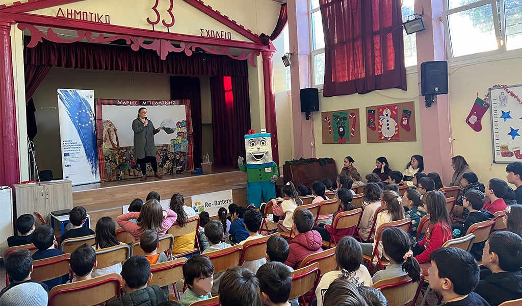 Ο Ρι-Μπαταρούλης, η μασκότ της Re–Battery, επισκέφθηκε τους μικρούς μας φίλους, μεταδίδοντας με τον μοναδικό του τρόπο την αγάπη για την ανακύκλωση. Με τη βοήθεια της Κυρίας Περιβάλλον, μοιράστηκε στα παιδιά το παραμύθι «Το θαύμα της Ενέργειας», ένα βιβλίο ειδικά δημιουργημένο για να διδάξει τη σημασία της προστασίας του περιβάλλοντος.