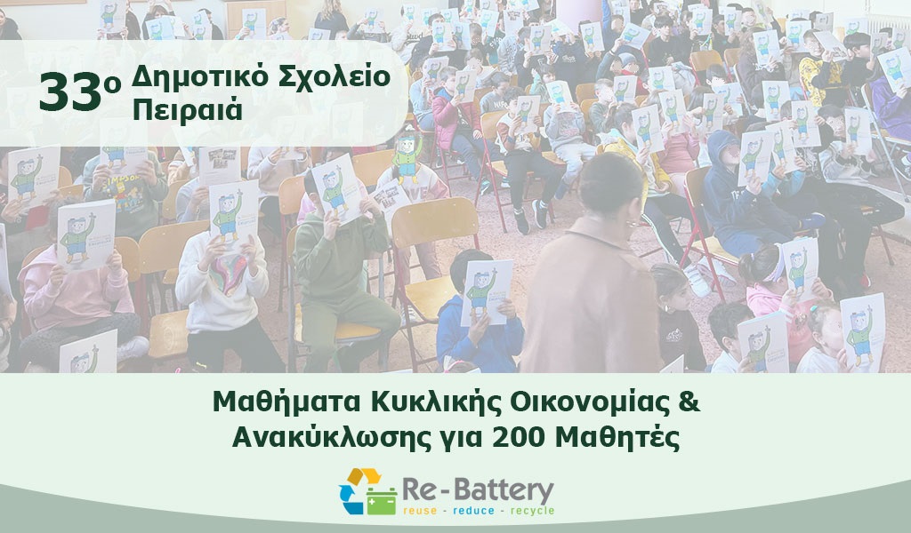 Οι δράσεις της Re–Battery συνεχίζονται δυναμικά με στόχο την ευαισθητοποίηση των μικρών μαθητών για την ανακύκλωση μπαταριών αυτοκινήτων. Η εκπαίδευση των παιδιών είναι βασική προτεραιότητα, καθώς αποτελούν τους αυριανούς «οδηγούς» της κοινωνίας μας!
