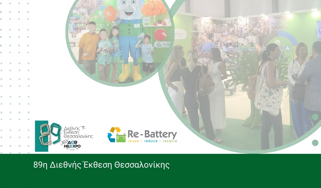 Η Re-Battery, ως Σύστημα Εναλλακτικής Διαχείρισης Συσσωρευτών οχημάτων & βιομηχανίας, συμμετείχε για 7η φορά στην 89η Διεθνή Έκθεση Θεσσαλονίκης που πραγματοποιήθηκε από τις 6 έως τις 14 Σεπτεμβρίου.