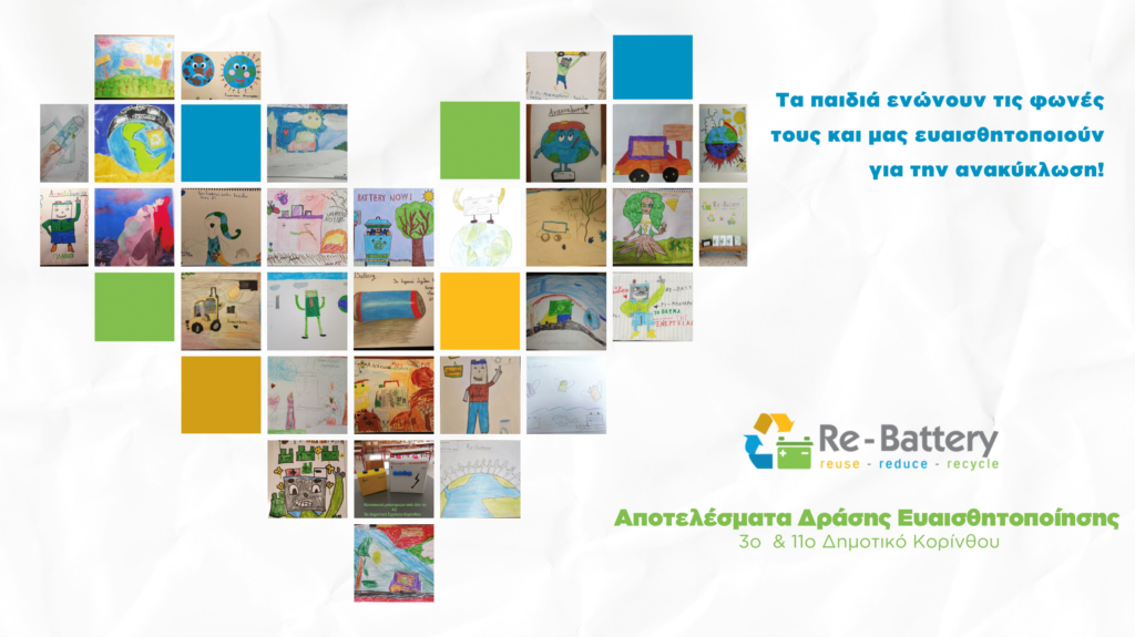 Στα πλαίσια της Ευρωπαϊκής Εβδομάδας Μείωσης Αποβλήτων η Re-Battery πραγματοποίησε θεατρικές παραστάσεις στο 3ο και 11ο Δημοτικό σχολείο Κορίνθου. Η συγκεκριμένη δράση είχε ως αποτέλεσμα την δημιουργία 73 έργων από τα παιδιά μέσα από τα οποία ένωσαν τις φωνές τους δίνοντας ελπιδοφόρα μηνύματα για την αειφορία του πλανήτη μας.