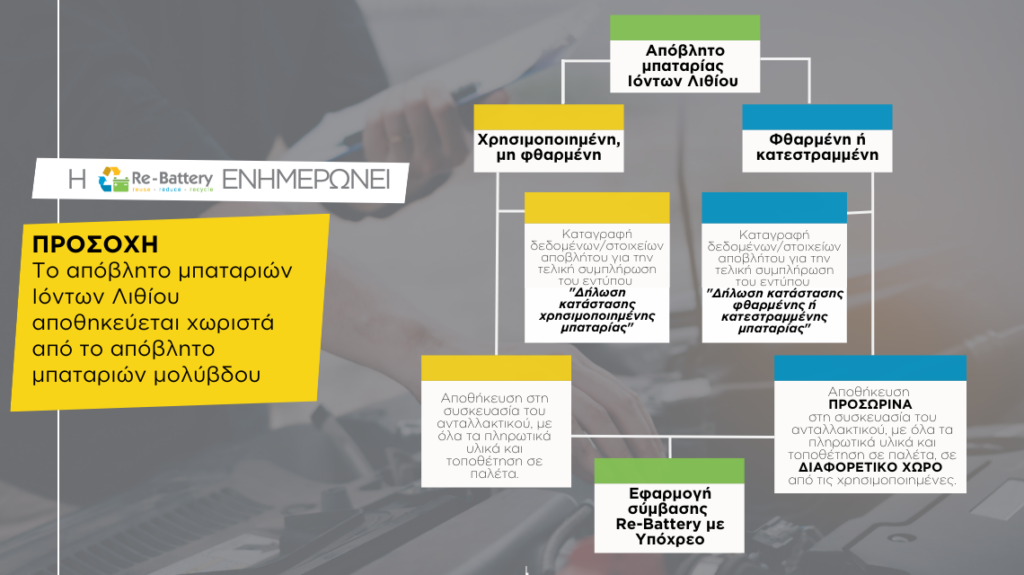 Το απόβλητο μπαταριών Ιόντων Λιθίου αποθηκεύεται χωριστά από το απόβλητο μπαταριών μολύβδου!