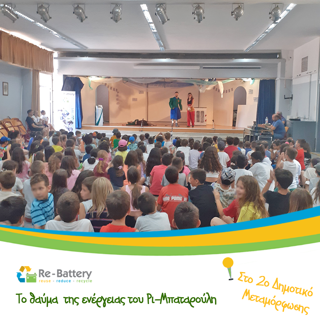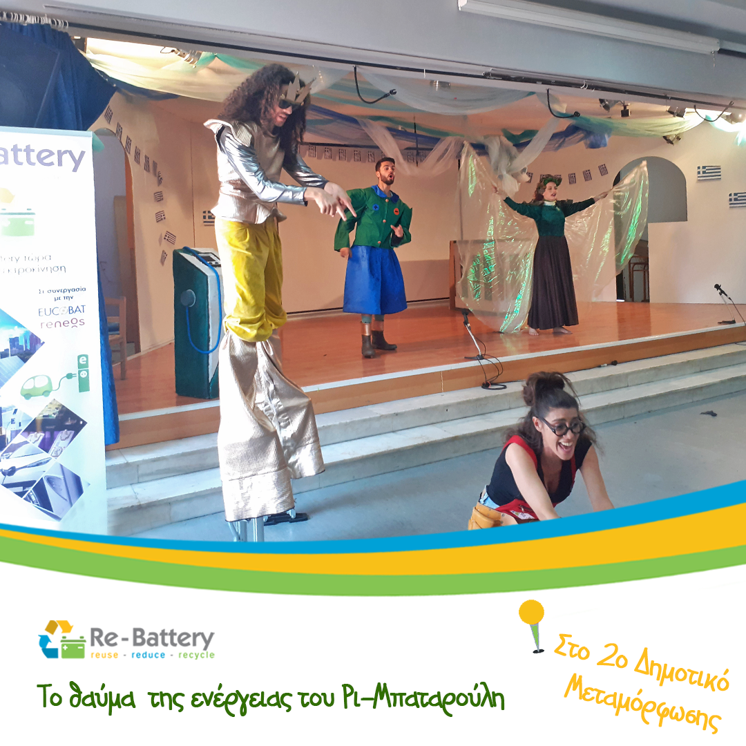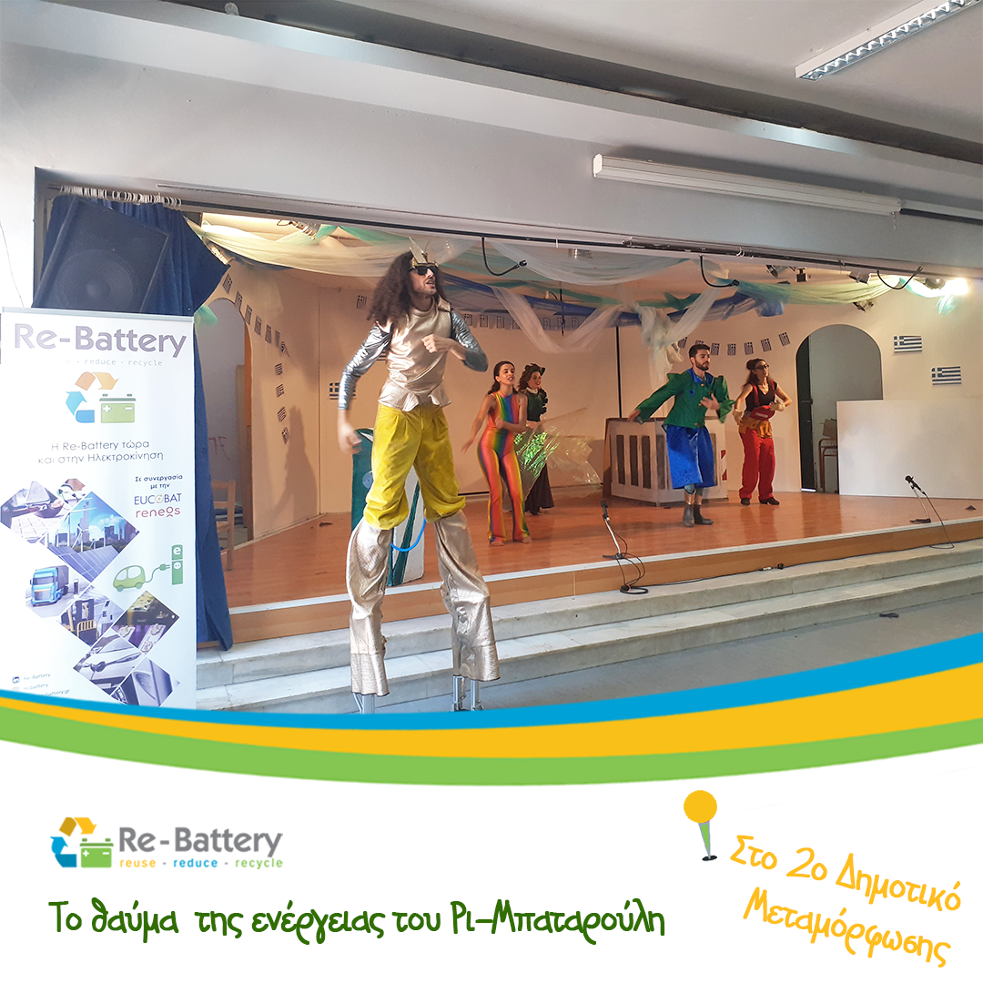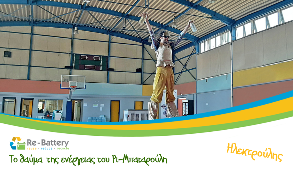 H θεατρική παράσταση «Το θαύμα της ενέργειας με τον Ρι-Μπαταρούλη», του Ιωάννη Έντγκαρ Αβετικιάν, πραγματοποιήθηκε με τη χορηγία της Re-Battery στο Αθλητικό κέντρο Γκράβας-Αττικής.
